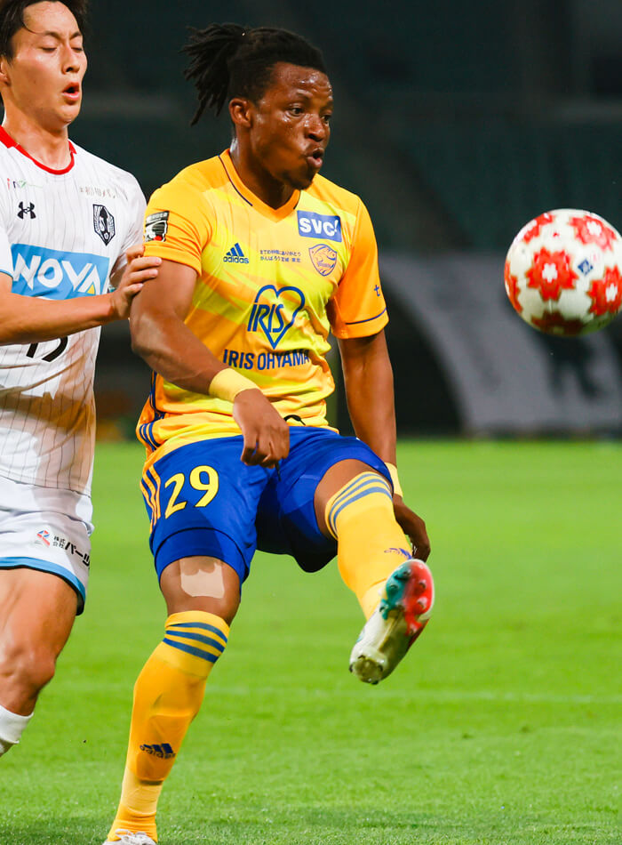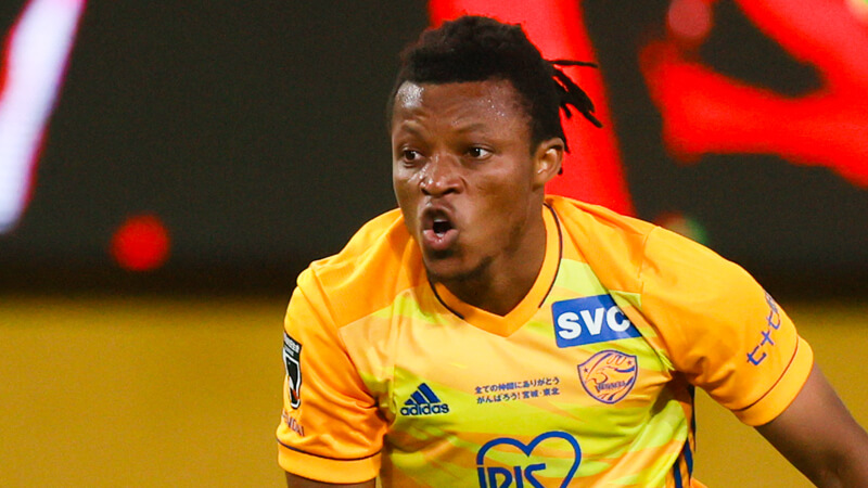 今シーズン加入したガーナ国籍のFWエマヌエルオッティ。入国が遅れ、4月に入ってからチームに合流し、4月17日、明治安田生命J1リーグ第10節・横浜FC戦でデビュー。スピードに乗ったパワフルなドリブル突破で仙台サポーターを大いに驚かせたが、この試合で負傷し、戦列を離れた。しかし、5月下旬には全体練習にも合流。負傷で離脱中、徐々に調子を上げてきたチームを見て、「連戦の中でチームは良い状況になってきました。自分が試合に入ったら、チームをサポートしたいと思います」と語っていたオッティは6月9日、天皇杯岩手戦が復帰戦となった。