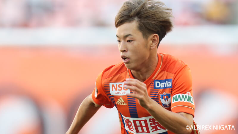 本間至恩は新潟のバンディエラ(旗頭)といえる存在だ。アカデミー生え抜きで、チームの中心を担う名手。U-15年代から新潟のアカデミーに所属。年代別の日本代表でもプレーした。U-18所属時の2017年に新潟トップチームに2種登録され、JリーグYBCルヴァンカップでJ公式戦デビューを果たした。さらに翌2018年、明治安田生命J2リーグ戦にも出場。その初戦となった同33節・金沢戦で決勝ゴールを決めた。