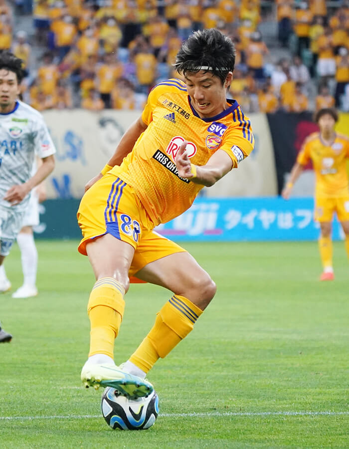 それでも、伊藤彰監督が「トレーニングで積極的に取り組んでくれることと、体のバランスが良くなってきたこと」を評価したように、中盤で調子を上げてきた。そして徳島戦ではMF8松下佳貴のスルーパスを受け、切り返しでDFを振り回してゴール。「仙台には練習からいいパスを合わせてくれる選手が多い。自分はそれを信じてアクションを続けたい」と動きの質を改善した結果だった。山形戦ではコーナーキックから頭でゴール。多くの場面で決定機に顔を出せるようになってきた。あとはゴールを増やすだけだ。