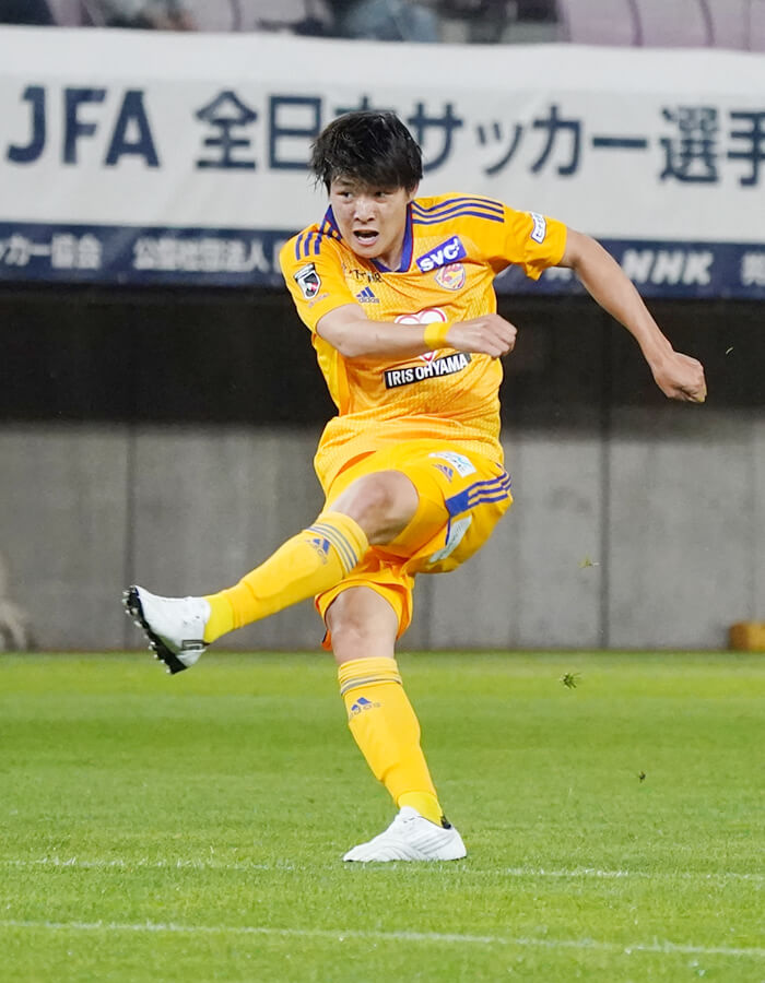 0-3だった72分に、菅原は交代でピッチへ。「自分のゴールで流れを変えたいと思って入りました」。さらに1点を失っても、その姿勢に変わりはなかった。「終了の笛が鳴るまでゴールを目指さなければいけないし、最後まで勝利に向かって戦わなければいけないという責任を持って僕たちは常にプレーしています」。その闘志が実ったのがあのゴールシーンだった。左サイドでMF32鎌田大夢がボールを持って顔を上げたときにはもうゴールに向かって動き出し、バウンドして球筋が伸びても足を止めなかった。「思い切り何も考えずにゴールネットを揺らすことだけを考えました」と右足を角度のないところから振り抜いた。