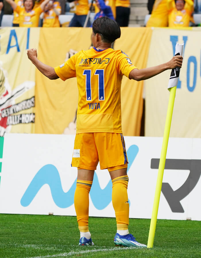 加入1年目から、サイドやトップ下といった複数のポジションでプレー。しかし「もともと攻撃的ポジションのどこでもこなせることが自分の強み」と難なく役割をこなし、決定機では巧みなワンタッチシュートでゴールを決めてきた。守備のプレッシャーにも鋭さを増し、チームに欠かせない選手となっている。今節は今シーズンJ2優勝チームが相手だが、ここでも存分に力を発揮してくれることだろう。チームを勝利に導くゴールを決め、ユアスタのコーナーフラッグをつかむパフォーマンスを何度でも見せてほしい。