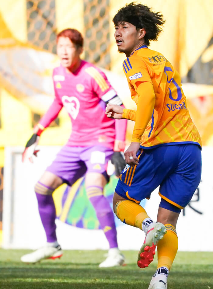 今シーズンから背番号を5に変えた。「チームを引っ張る存在にならなければいけない」という決意のあらわれだった。新しいシーズンもディフェンスラインの中央に入り、空中戦でも地上戦でも堅守に貢献。そして機を見て突き刺すパスも積極的に狙っている。J2第2節・長崎戦では先制点を決め、チームの今シーズン初勝利に貢献した。