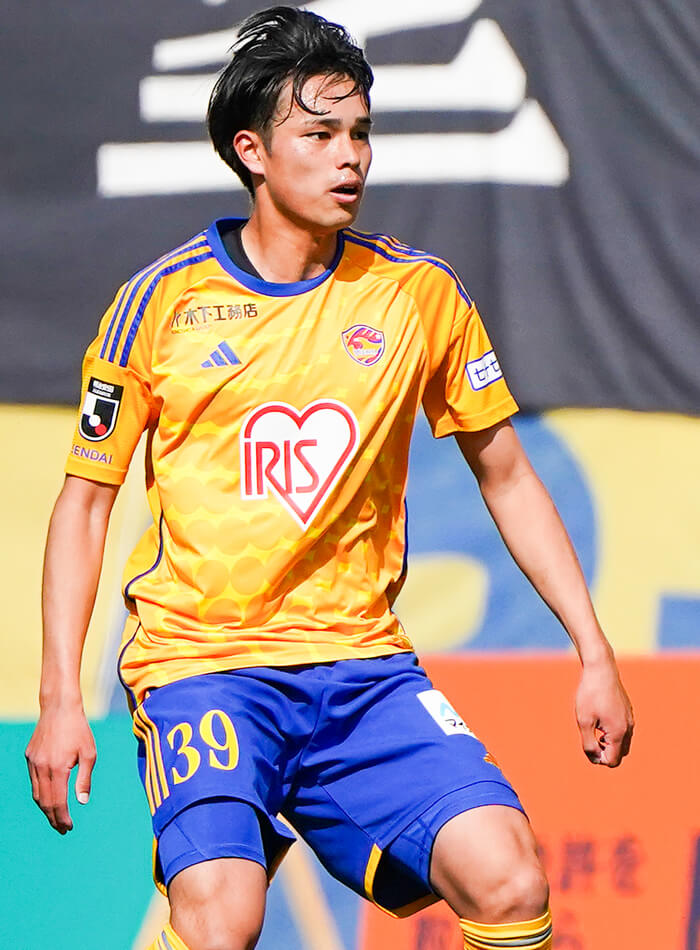 端からは冷静に試合の状況に対応して見えるが、本人は「まだまだ」と浮かれることなく謙虚に自分を磨く。プロ初出場を先発で経験した明治安田J2第1節・大分戦は「とても緊張した」とのこと。だが、その大分戦では立ち上がりの時間帯に両チーム最初のシュートを打ったように、自身の思いきったプレーで緊張を解くことができる。